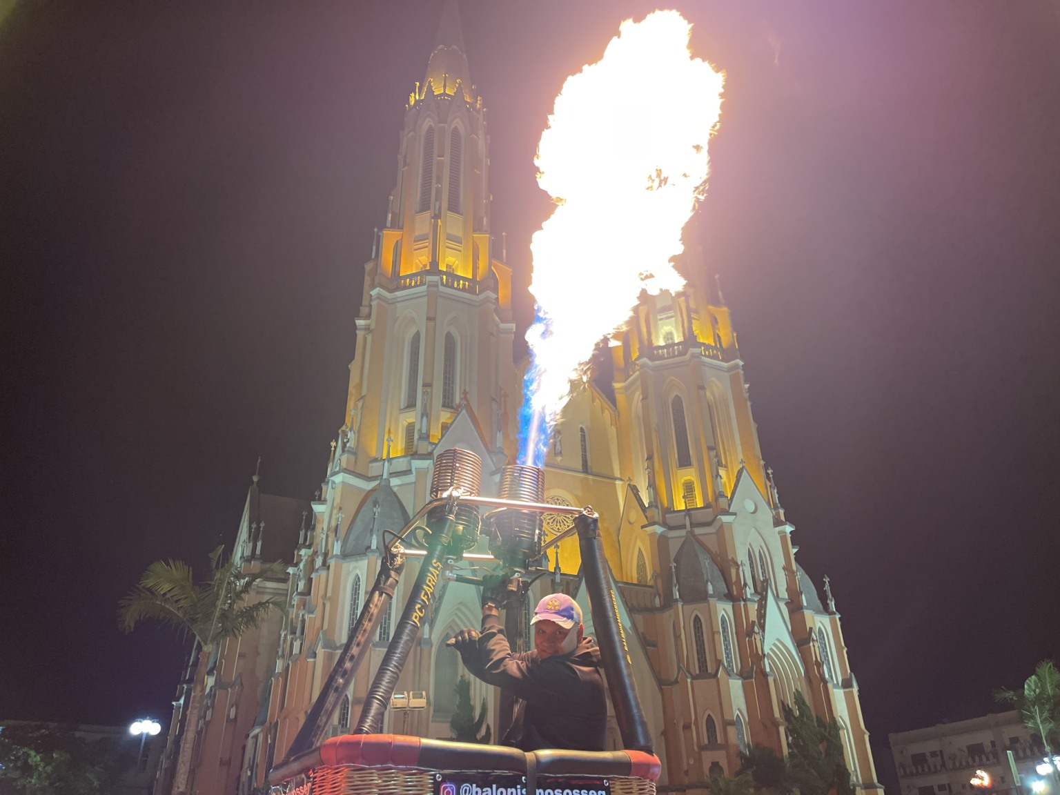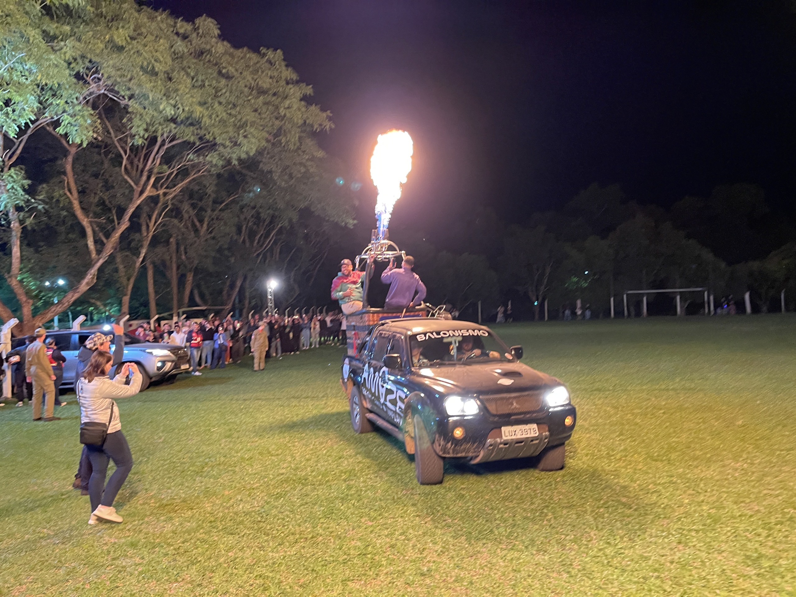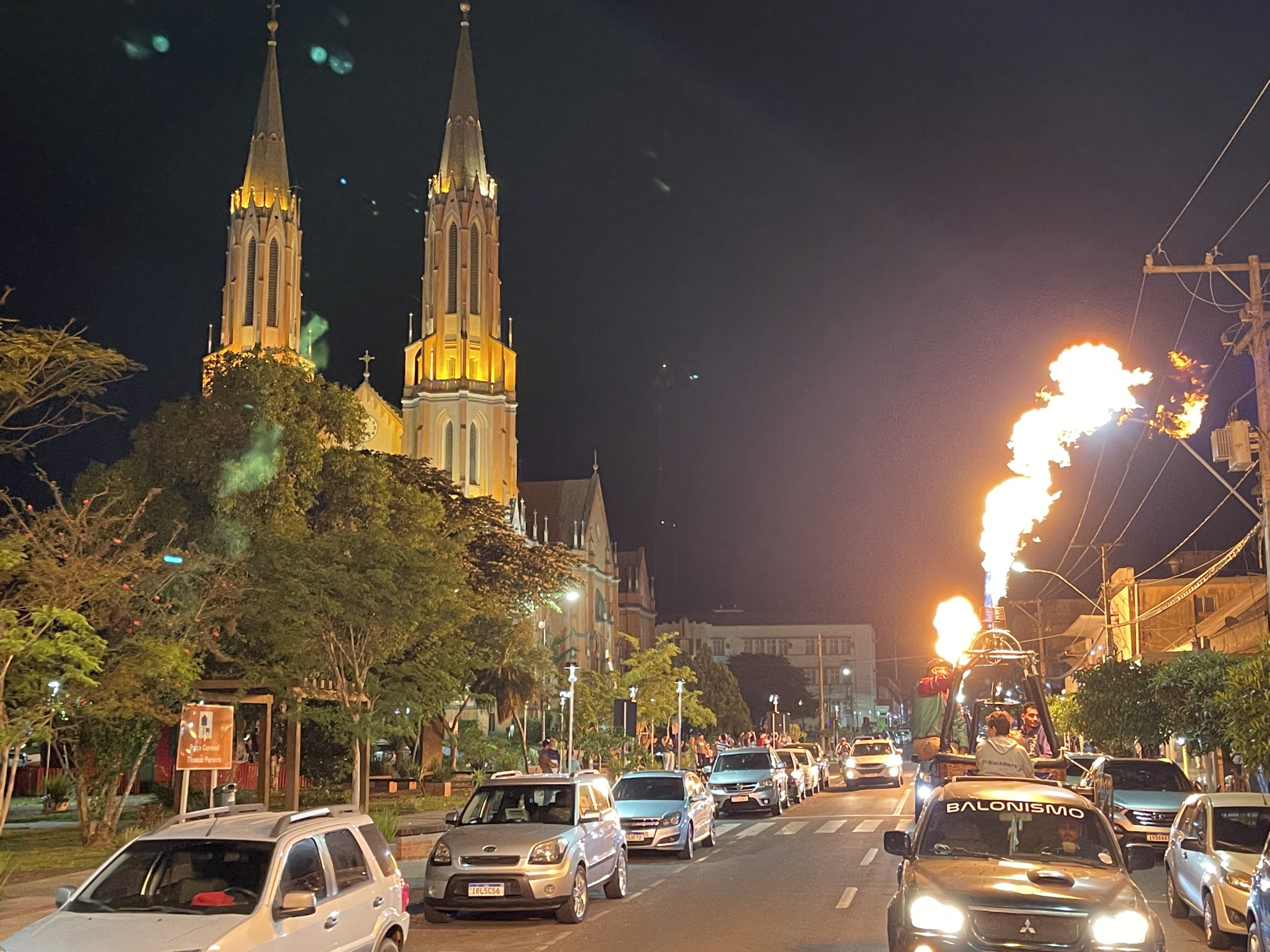 Em dois momentos, em frente à Igreja São Sebastião Mártir e na chegada ao campo da Assive no Parque do Chimarrão – onde um grande público se reuniu -, os balonistas ainda realizaram uma contagem regressiva e, simultaneamente, acionaram os maçaricos.