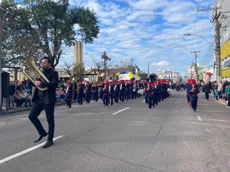 Participaram 10 escolas da rede municipal, duas da rede privada e 14 entidades, incluindo clubes de serviço e associações locais. Os protagonistas do momento foram as bandas das instituições escolares, como da Escola Municipal Cívico-Militar de Ensino Fundamental (EMCMEF) Cidade Nova, Escola Municipal de Ensino Fundamental (Emef) Professora Odila Rosa Scherer, Emef José Duarte de Macedo e Colégio Gaspar Silveira Martins.