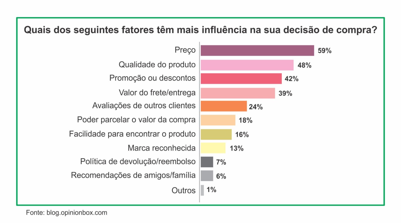 O resultado surpreende porque, no levantamento anterior, a ordem era inversa, e a qualidade pesava mais que o preço. O cenário atual revela um consumidor mais atento ao impacto financeiro de suas escolhas e disposto a priorizar o bolso na hora da compra. Essa inversão traz implicações diretas para o marketing, pois são os dados que orientam o trabalho do profissional.