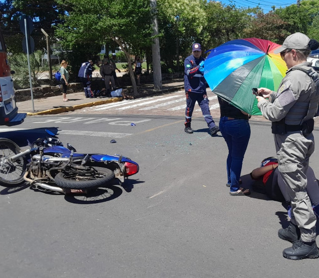 Um acidente de trânsito foi registrado na tarde desta quinta-feira, 4, na rua Tiradentes, esquina com a Conde D’Eu, no Centro de Venâncio Aires. A colisão envolveu um automóvel Focus e uma motocicleta Honda CG. Os dois ocupantes da moto, irmãos, de 15 e 18 anos, ficaram feridos e foram conduzidos para o Hospital São Sebastião Mártir (HSSM).