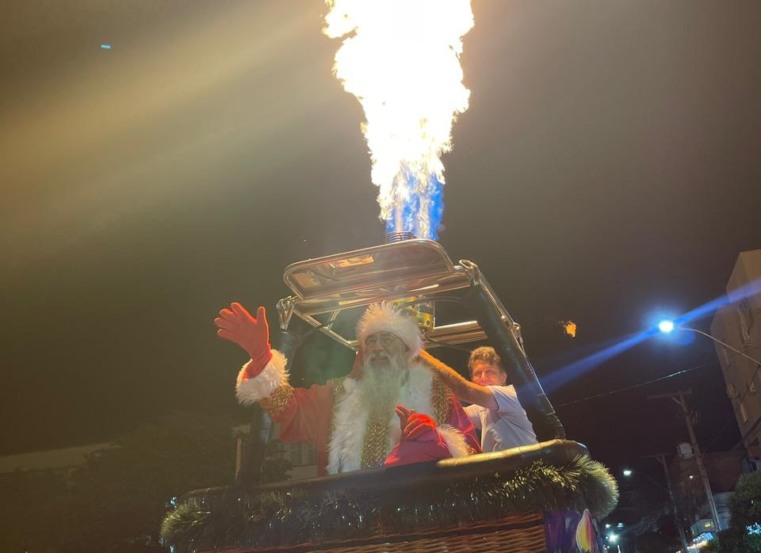 Venâncio Aires - O Papai Noel chegou a Venâncio Aires na noite desta sexta-feira, 5, marcando a abertura da programação natalina do município. O Bom Velhinho chegou em grande estilo, dentro do cesto de um dos balões do piloto Sérgio Jung, arrancando aplausos das milhares de pessoas que marcaram presença na Travessa São Sebastião Mártir, no Centro da cidade.