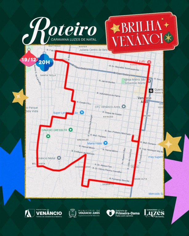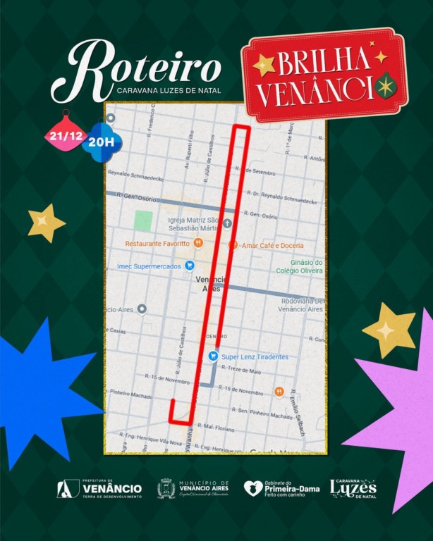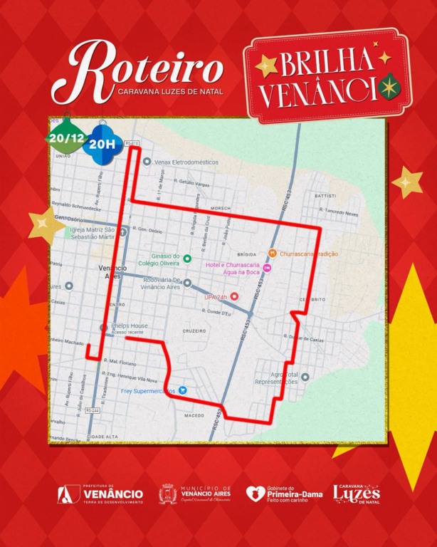 “Nós convidamos as pessoas a virem prestigiar nossos desfiles que serão verdadeiras apresentações artísticas. Vamos passar por trechos de diversos bairros da cidade e, nas três noites, passaremos também pela rua Osvaldo Aranha”, destaca Franco. A Caravana Luzes de Natal é um espetáculo itinerante de veículos alegóricos decorados com iluminação e temas natalinos que percorre as ruas de Venâncio Aires. Ao longo do trajeto, os carros ornamentados levam música, personagens e a magia do Natal até diferentes regiões, com paradas programadas e ações destinadas às crianças e famílias.