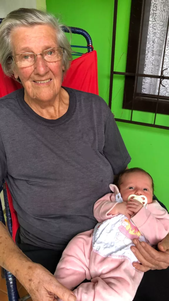 Wilma e Maria, que são aposentadas, ainda comemoram a chegada da Isis. “Estou muito feliz. Estávamos todas ansiosas para conhecer, foi um presente para a família”, afirma Wilma, a tataravó da pequena. Segundo Maria, o momento é de alegria em presenciar a sequência das raízes da família e também poder ver uma nova versão da neta, agora mãe. “Que sigamos todas unidas e mantendo vivo o valor da nossa família”, diz.