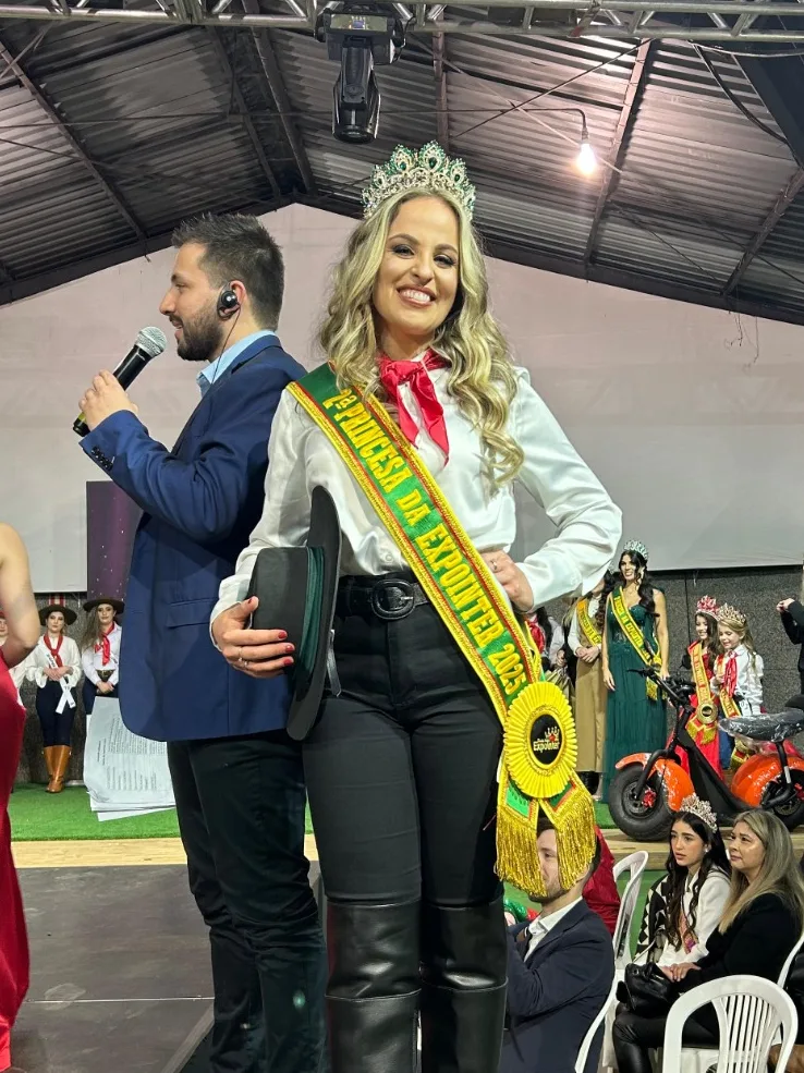 Venâncio Aires está na nova corte da Expointer. Na noite deste domingo, 17, Larissa Almeida Maciel, de 29 anos, foi escolhida 2ª princesa da 48ª edição do evento. A advogada, que também é princesa da 17ª Festa Nacional do Chimarrão (Fenachim), representou Venâncio e a Afenachim. “A ficha ainda não caiu ainda, mas estou muito feliz. Será uma honra representar a 48ª Expointer e, com certeza, carregaremos no coração, cada uma das meninas que estiveram aqui hoje”, destacou Larissa, logo após receber a faixa e a coroa.