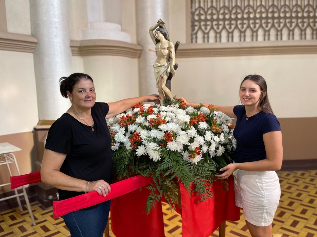 Venâncio Aires - A tradição da Festa de São Sebastião Mártir, em Venâncio Aires, ganha cores e formas pelas mãos de quem carrega a fé no coração e no trabalho. Márcia Hinterholz Hickmann, 50 anos, e a filha, Bruna Hickmann, de 23, são as responsáveis pela ornamentação da igreja e do andor do padroeiro durante os dias da festividade.