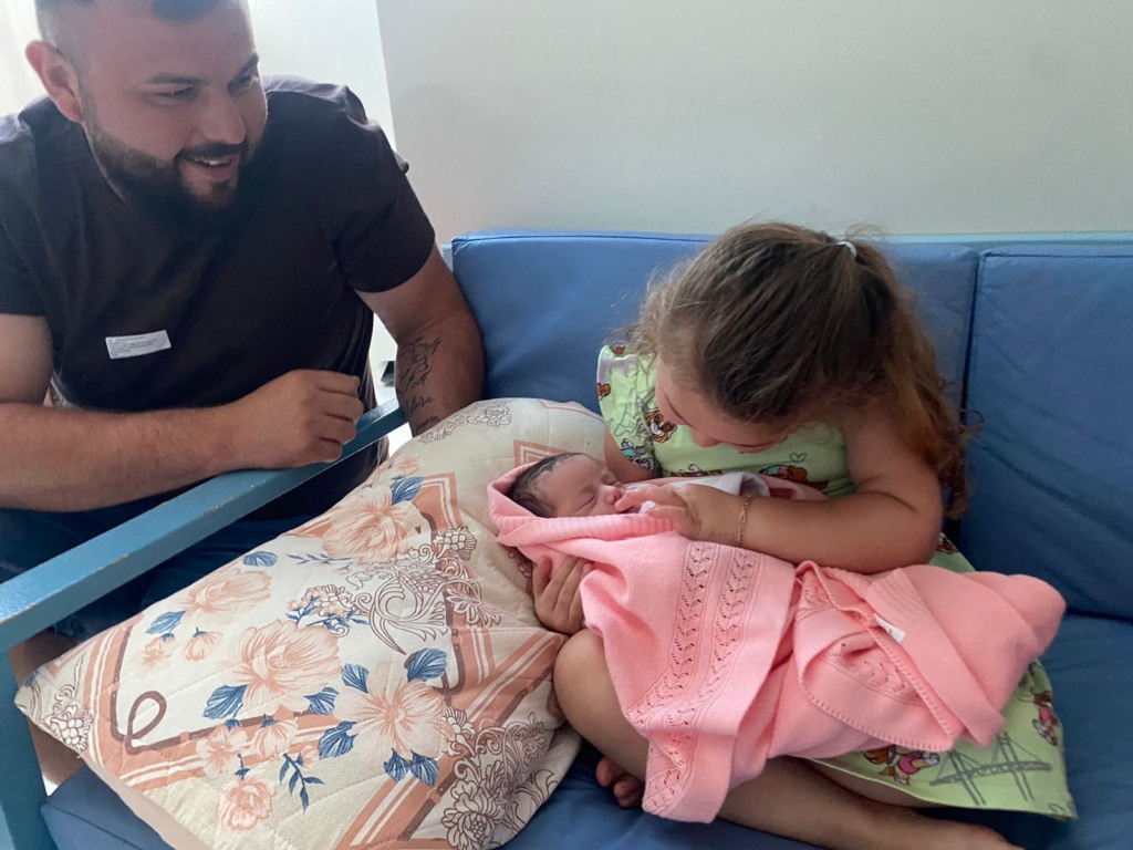 No quarto do Hospital, a irmã Maria de 4 anos já estava dando beijos e um colinho para a mana recém-nascida. Além de Maya, o casal teve a primogênita Heloísa, nascida em 2020, de forma prematura, com 23 semanas, que acabou falecendo. Logo após, em 2021, nasceu Maria Heloísa. As duas irmãs carregam o nome Heloísa em homenagem à primogênita.