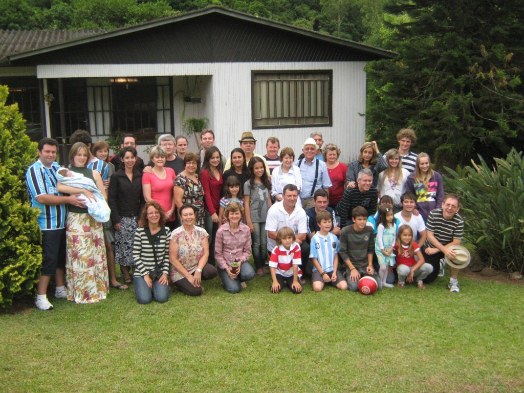 A vó Gertrudes amava ver todos numa alegria imensa. Embaixo de uma árvore, um cinamomo, os tios se reuniam para uma grande roda de chimarrão, conversando muitas vezes em alemão, e nós brincando no potreiro e no riacho que corria nas terras da vó. Mais tarde o café era servido. Pensa naqueles cafés coloniais, assim era na vó: bolos, bolachas, cucas, doces, torta fria e muito mais. Voltávamos para Porto Alegre com o coração repleto de emoções e a alegria de ver todos reunidos.