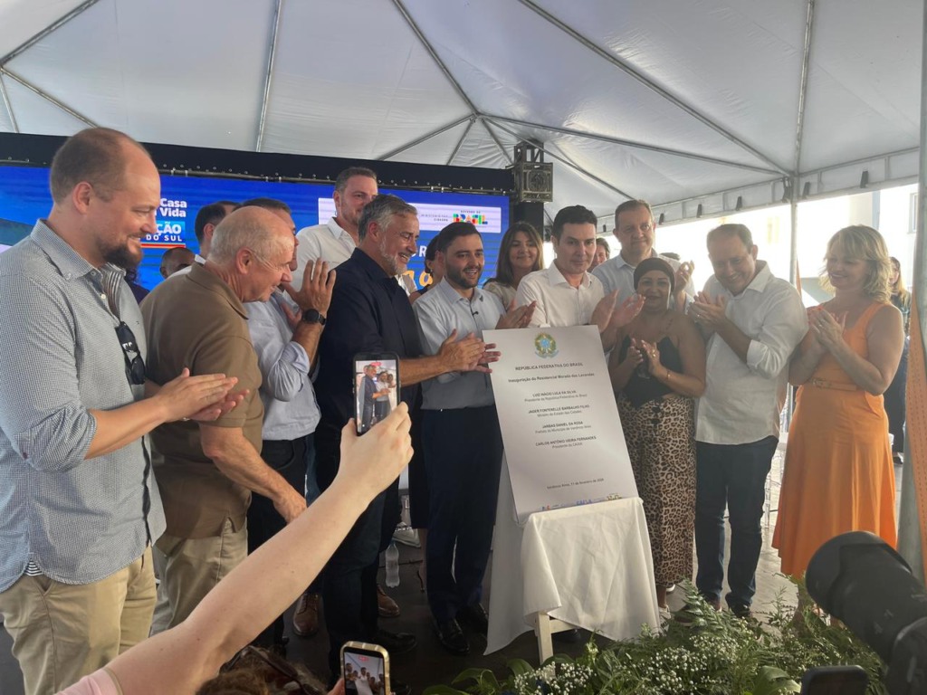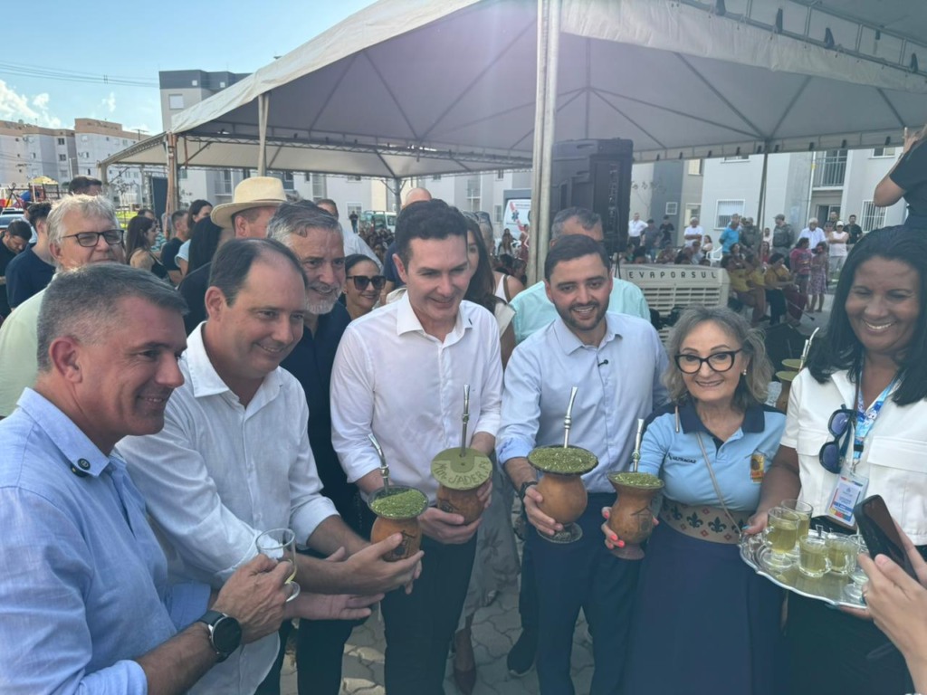 Venâncio Aires - Das mãos do ministro das Cidades, Jader Filho, foi entregue a chave simbólica para as famílias contempladas no novo Residencial Morada das Lavandas, o primeiro empreendimento entregue no novo modelo do programa federal Minha Casa, Minha Vida (MCMV), com recursos do Fundo de Arrendamento Residencial (FAR). em todo o país.
