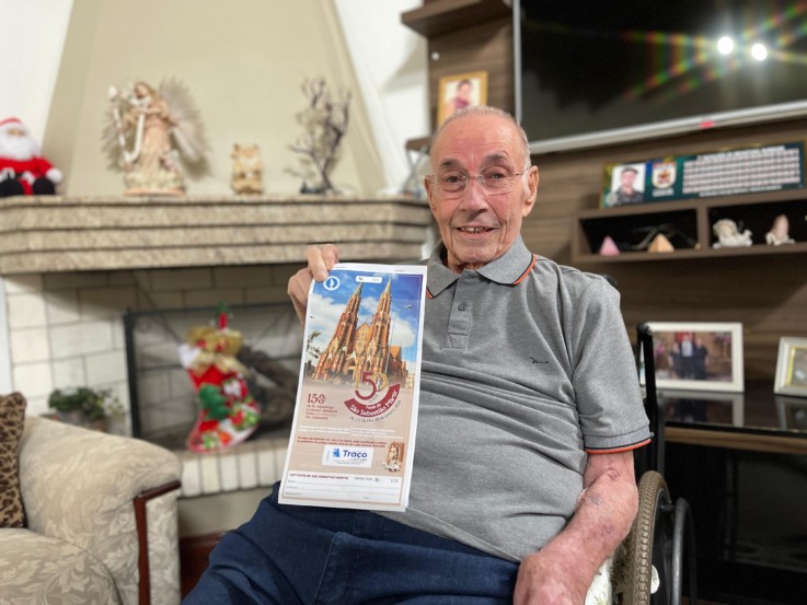 Apesar da idade e dos problemas de saúde, Olmiro não deixou a tradição de estar envolvido com a Ação Entre Amigos da Festa do Bastião de lado. Na mesa de casa, está um bloco da festa de 2026, ainda com alguns números disponíveis, que ele oferece para quem o visita. Ele segura as folhas com emoção e, por dentro, o peito cheio de alegria.
