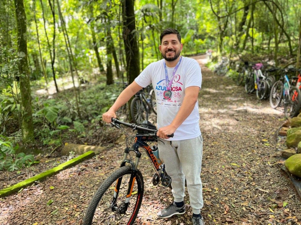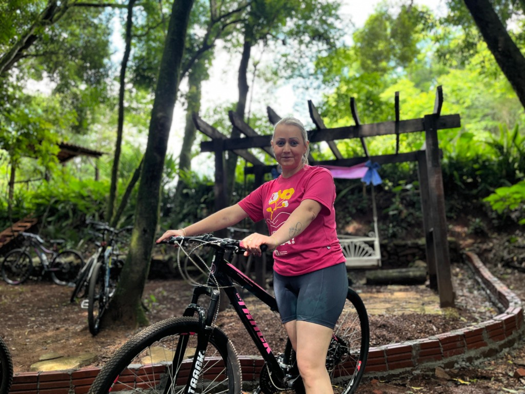 Simone Konrad, 40 anos, que gosta de estar envolvida em pedais e jogos de vôlei, compartilhou a luta contra um câncer de colo do útero descoberto no ano passado. “Foi difícil, foi uma caminhada complicada, mas eu tô aqui graças à minha família e aos amigos que me apoiaram”, disse ela, emocionada.