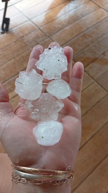 Houve queda de granizo em bairros como União e Gressler em localidades do interior como Linha Harmonia da Costa, Linha Saraiva, Linha Sapé, Centro Linha Brasil e Linha Arroio Grande. Até o momento não há relatos de prejuízos.