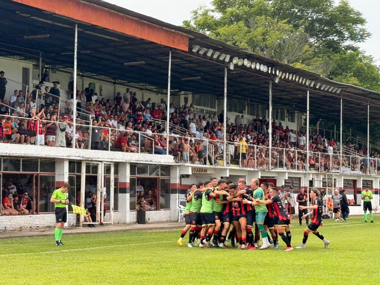 Um jogo histórico que marca a classificação do Esporte Clube Guarani à final da Terceirona Gaúcha e garante o acesso à Série A2. O placar de 4×0 confirmou 100% de aproveitamento da equipe rubro-negro, que iniciou a partida pressionando o Sport Clube Rio Grande.