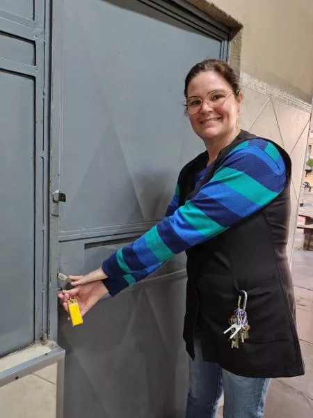 Precisou de algo relacionado à limpeza, manutenção ou abrir uma porta? Chama a Kelly, a ‘dona’ das chaves no Estadual. O nome dela é Josiane Raquel Metz, 42 anos, mas desde criança é a Kelly, apelido que segue dentro do CAJ, onde trabalha desde 2003, depois de fazer o último concurso público para auxiliar de manutenção e infraestrutura nível II.