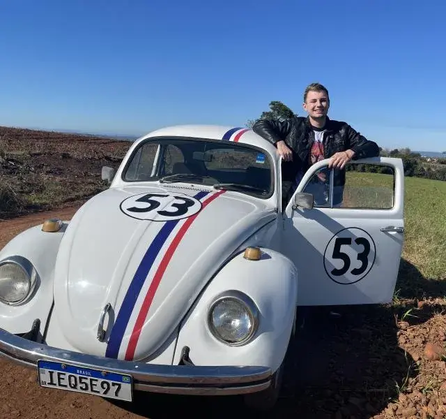 Mas, no interior de Venâncio Aires, mais precisamente em Vila Palanque, a reportagem encontrou um Herbie a rigor: branco, com detalhes em vermelho e azul, além do número 53 nas portas e no capô. Ele pertence a Éverton Luiz Vogt, de 25 anos. O jovem, formado em técnico de Enfermagem e Licenciatura em Ciências Biológicas, comenta que conheceu a história ainda criança, nas reprises dos canais de TV aberta. “O SBT passava muito o filme de 1968, foi a primeira vez que vi. Mas, como nasci em 2000, o que mais assisti foi ‘Herbie – Meu Fusca Turbinado’, de 2005. Esse eu assisti várias vezes, pois passava seguidamente na Sessão da Tarde, da Rede Globo. Também cheguei a ter o DVD. O restante dos filmes [são seis ao todo], assisti nas plataformas de streaming”, afirma.