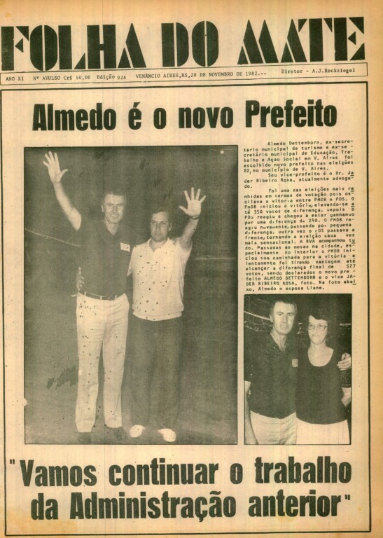 Primeira vez prefeito, em 1982. Seu vice era Jader Ribeiro Rosa