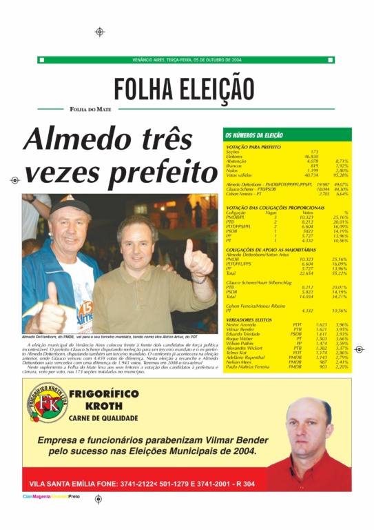 Terceira vez eleito prefeito de Venâncio Aires, em 2004. Seu vice era Airton Artus
