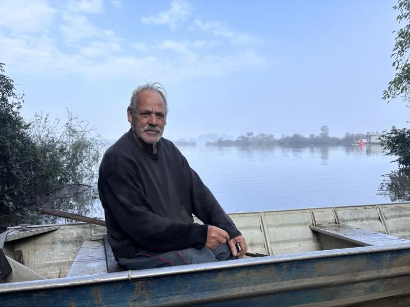 Morador da rua Venâncio Aires, o pescador Mauro da Rosa Fischer, 71 anos, é conhecido apenas como Alemão. O apelido é devido ao sobrenome do avô paterno, que foi casado com Laura (natural de Santo Amaro e benzedeira afamada na vila). Foi ela quem criou o pescador desde os três meses de vida. Com isso, Alemão cresceu na vila e fez do Rio Jacuí o lugar favorito. “Prefiro estar lá dentro”, afirma, apontando o horizonte preenchido pela água.