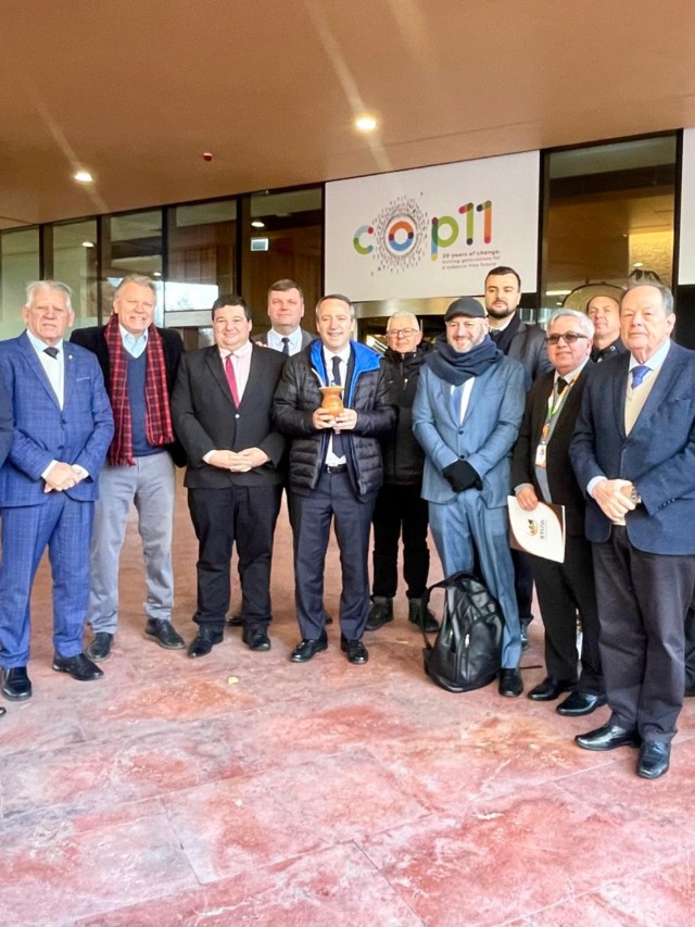 No segundo dia da Conferência das Partes da Convenção-Quadro para o Controle do Tabaco em Genebra, na Suíça, foi do lado de fora do centro de eventos que sedia o evento internacional que lideranças políticas e representantes da cadeia produtiva do tabaco encontraram o parlamentar português e membro da Comissão de Saúde de Portugal, Sérgio Humberto. Diante de uma temperatura de apenas 2 graus nas primeiras horas da manhã, foi o chimarrão preparado pela comitiva venâncio-airense que atraiu atenção dele e deu início à ‘roda de conversa’, até o grupo brasileiro descobrir que se tratava de um representante do parlamento europeu.