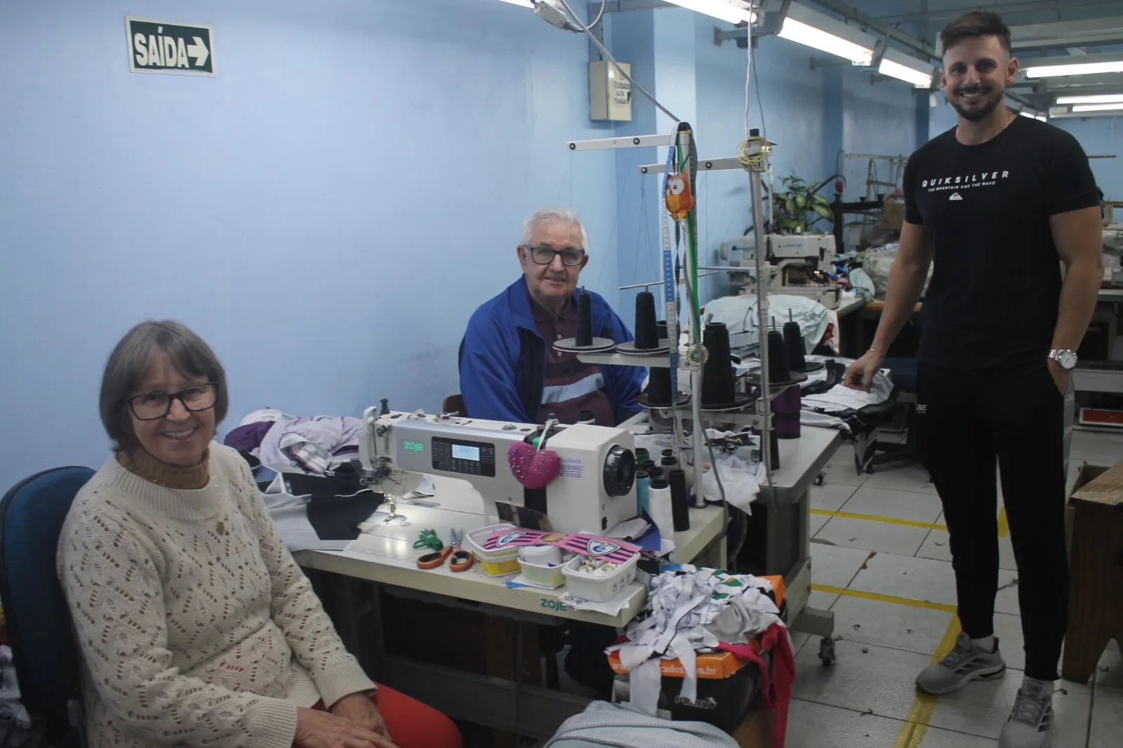 Depois de se dedicar ao cultivo de verduras, ele aprendeu a costurar, com a esposa, aos 55 anos. Atualmente, os dois são sócios do filho Alexandre na Schulz Confecções, empresa localizada nos fundos da SBE Sports e que, entre os serviços, realiza costura de forma terceirizada para a SBE — essa, por sua vez, empresa do caçula Maicon Schulz. “Dos cinco filhos, só a Claudete que não seguiu na área, pois trabalha há 29 anos na CTA. Mas os outros quatro, além de nora, genro e netos, ‘foram todos atrás de mim’. Fico feliz com isso. Tudo o que a gente tem veio da costura”, orgulha-se Idalina, que segue trabalhando, ao lado do marido.