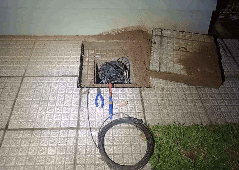 A guarnição foi acionada depois que vigilantes de uma empresa de segurança constataram uma queda de energia no local. Ao verificar a situação, eles flagraram o indivíduo com um alicate nas mãos, tentando acessar a fiação. Ao lado do suspeito, foram encontrados fios já cortados e uma tampa de acesso à rede elétrica que havia sido removida.