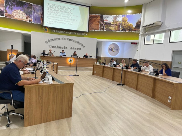 Venâncio Aires - Nesta segunda-feira, 2, a Câmara de Vereadores de Venâncio Aires realizou a primeira sessão ordinária do ano. Na pauta de votação, foram aprovadas duas moções de aplauso e dois projetos de lei enviados em regime de urgência pela Prefeitura. A reunião foi presidida por Nelsoir Battisti, eleito, no ano passado, para liderar o Legislativo em 2026.