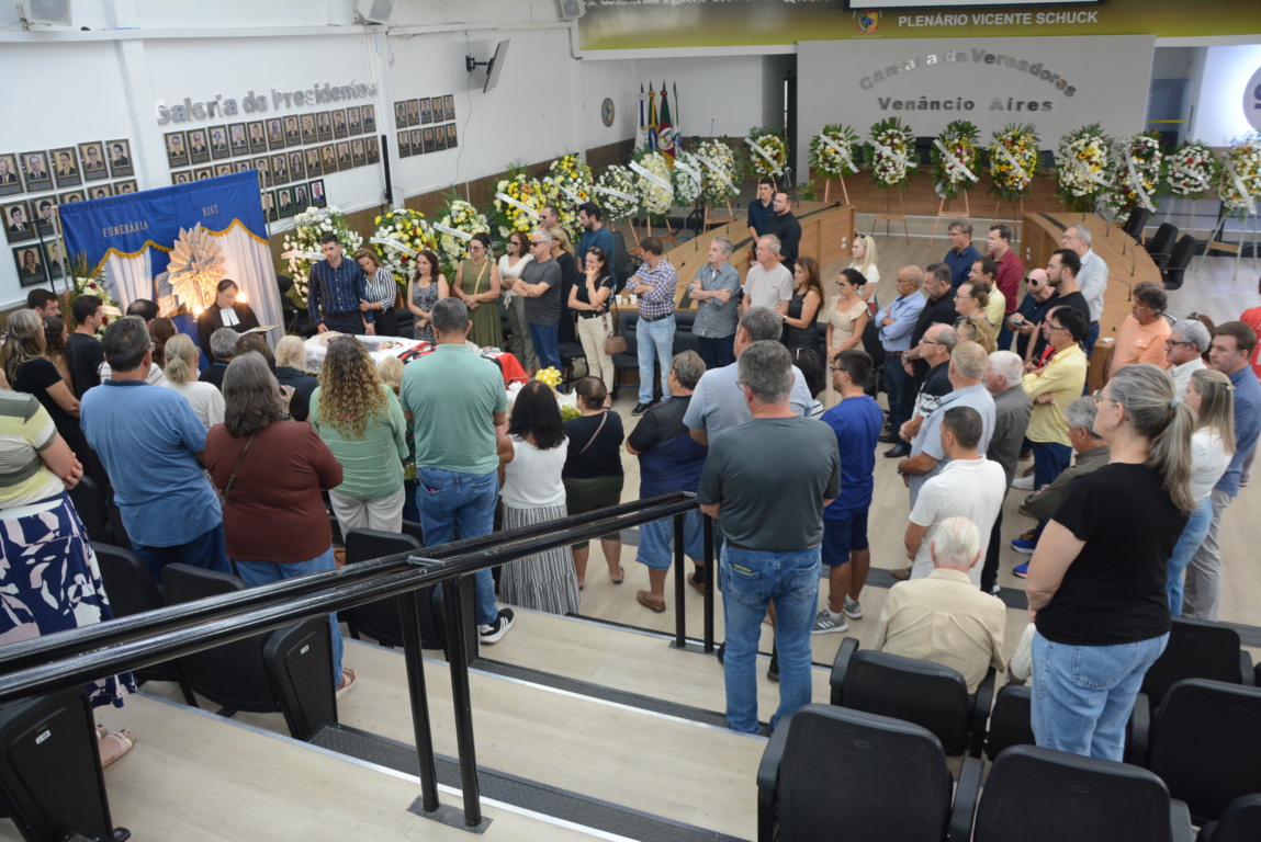 Venâncio Aires - Além de lideranças políticas e empresariais de Venâncio Aires e região, diversos eleitores fizeram questão de prestar a última homenagem ao ex-prefeito Almedo Dettenborn, falecido na terça-feira, 20, aos 85 anos. Após o velório na Câmara de Vereadores, ele foi sepultado na tarde de quarta-feira, 21, no Cemitério Parque Jardim Bela Vista. A presenã de pessoas da comunidade no velório é um reflexo do carinho que muitos venâncio-airenses tinham pelo político, que foi vereador e chefe do Executivo por três mandatos.