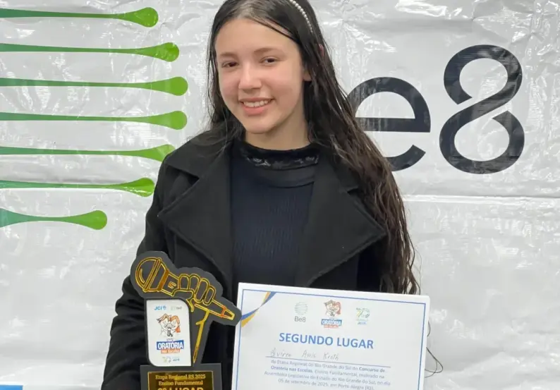 Além dela, a Capital do Chimarrão também esteve representada nesta tarde pela aluna Maiquéle Schoeninger, de 18 anos, do 3º ano da Escola Estadual de Ensino Médio Sebastião Jubal Junqueira, de Vila Deodoro. Em 2024, outra representante de Venâncio Aires, Isadora Barden, foi a vencedora da etapa nacional do concurso Oratória nas Escolas.