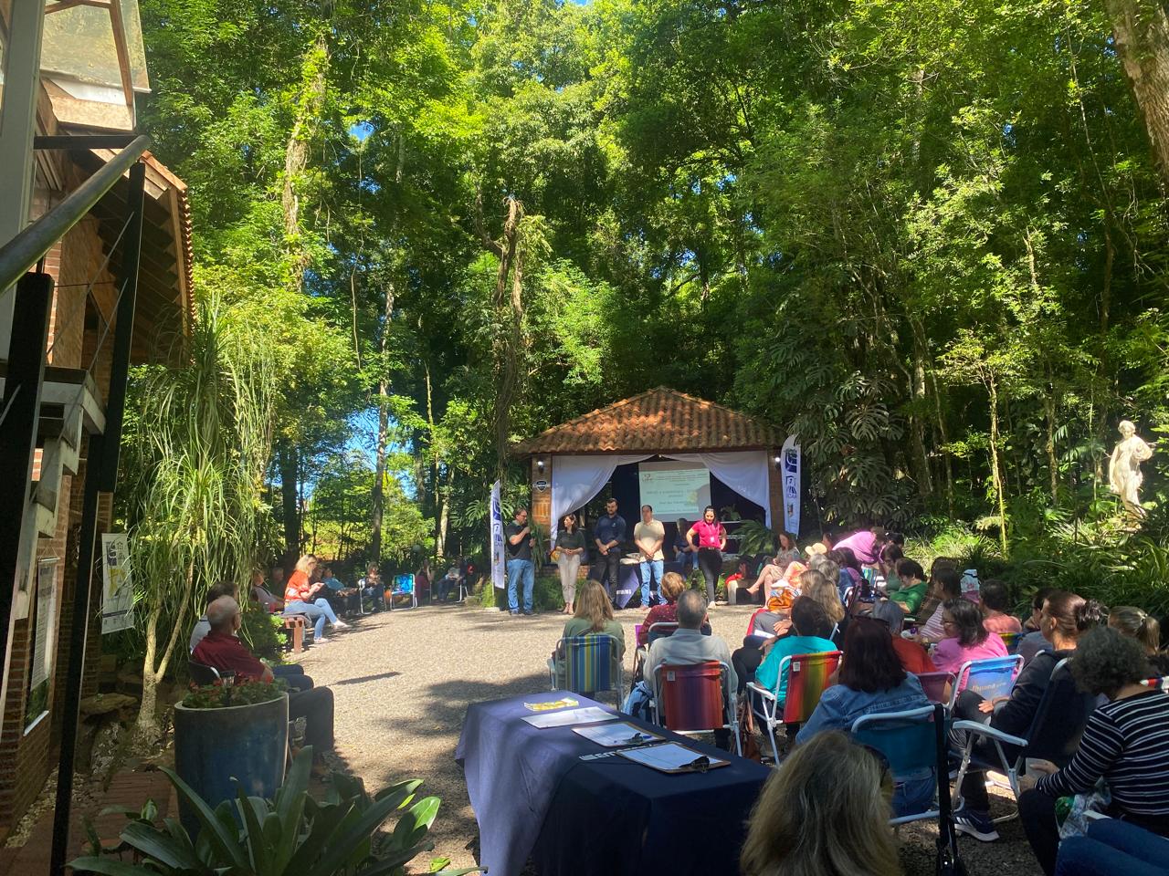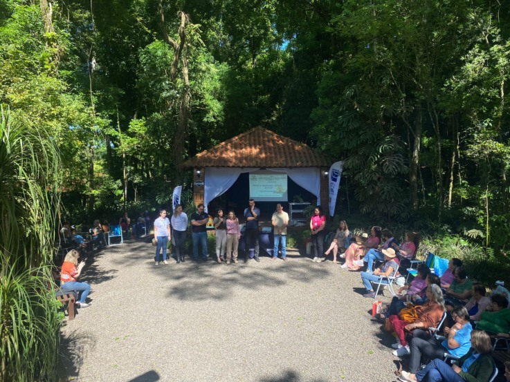 Os inscritos acompanharam as palestras e oficinas sentados à sombra das árvores. Conforme explica a extensionista rural e social da Emater, Viviane Röhrs, a escolha do local teve como objetivo valorizar o turismo rural e proporcionar um ambiente acolhedor ao ar livre. “O tema deste 6º Fórum Municipal de Segurança e Soberania Alimentar teve como foco a sustentabilidade alimentar e a alimentação consciente, e acredito que esse assunto combina perfeitamente com o cenário que encontramos no Refúgio Rafah”.