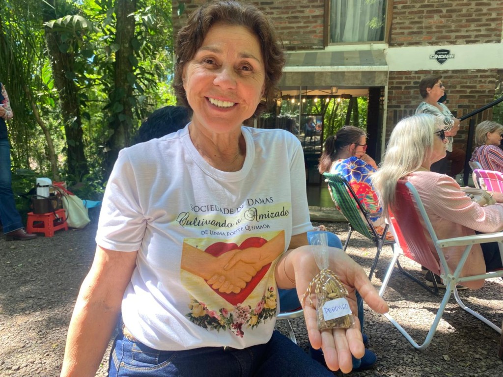 Cada participante levou um saquinho de sementes ou mudas para troca. Uma das participantes do fórum foi a moradora de Linha Ponte Queimada, Marina Eliana da Veiga. A integrante das Sociedade de Damas Cultivando a Amizade levou sementes de porongo para troca. “Não planto os porongos para fazer cuia, mas para fazer suporte para os passarinhos”, compartilhou.