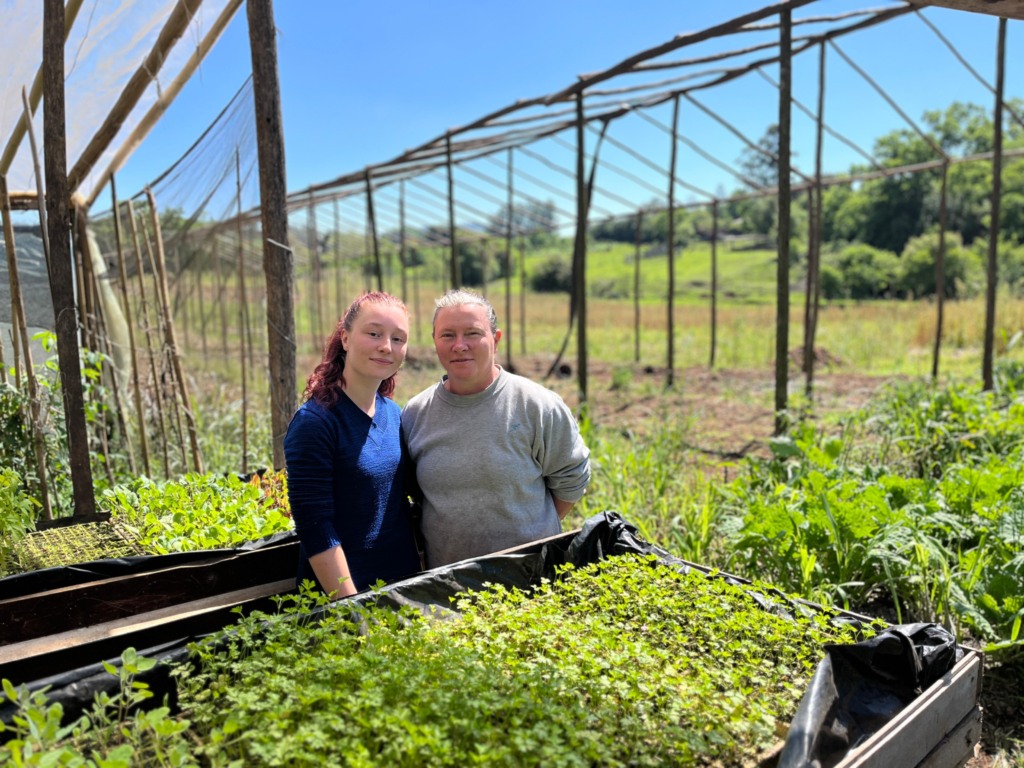 Agora, a aposta, junto com a mãe, é criar galinhas e comercializar ovos caipiras. Buscando incrementar mais a renda e diversificar a variedade de árvores e plantações na propriedade, uma estufa está em fase de finalização e vai receber, nas próximas semanas, verduras, como alface, beterraba e repolho.