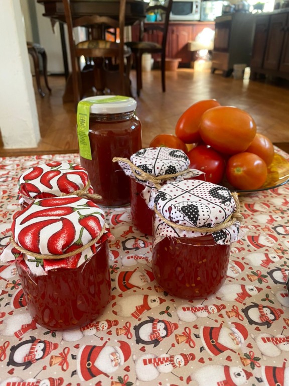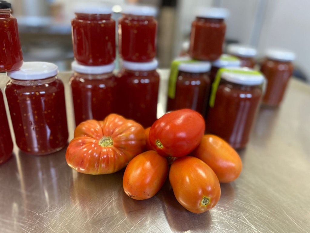 Sérgio é responsável pelo manejo da lavoura e pela maior parte da colheita. Marilene também auxilia, mas o foco principal do trabalho dela é na agroindústria familiar, onde coloca em prática sua criatividade culinária. Com a grande produção deste ano, ela precisou desenvolver novas alternativas para evitar desperdício. “Há alguns anos produzo e comercializo o molho de tomate e também vendo o fruto in natura. Neste ano, pela quantidade, criei a geleia de tomate, com e sem pimenta”, conta.