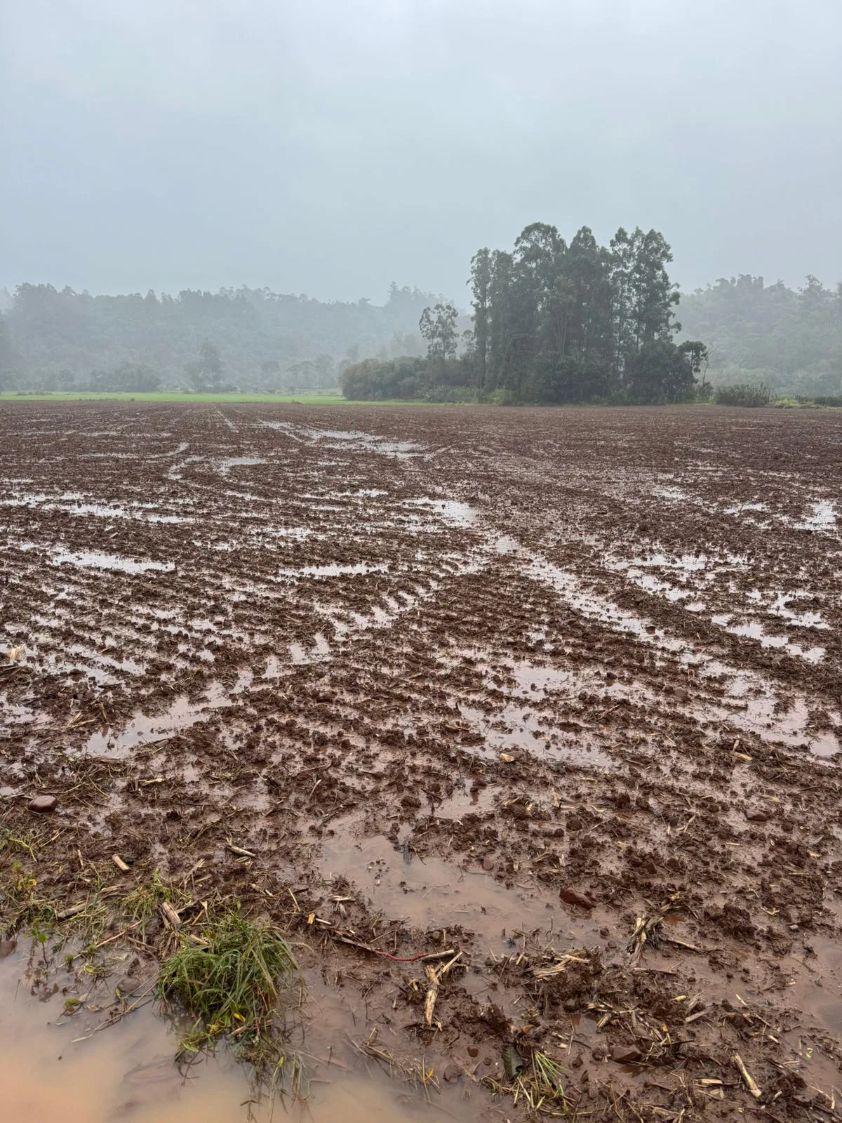 Em Linha Isabel, no interior de Venâncio Aires, a família Bencke registrou quase 280 milímetros de chuva nos últimos dias. Segundo Carlos Bencke, em parte da área de trigo semeada na semana passada, ele já sabe que haverá perda. Foram plantados 40 hectares entre as localidades de Linha Antão e Linha Arroio Grande e, nos pontos mais baixos, ainda que sejam drenados, dificilmente serão recuperados. “Estamos com mais uma situação nesse ano, com muito volume de chuva. Como está quase uma semana com chuva, desde sábado começou com chuvisqueiro, tivemos uma perda novamente no nascimento do trigo. Tem chance de escapar uns 20 hectares, com áreas de coxilha, mas nelas também têm as manchas de umidade e erosão, o que vai atrapalhar”, descreveu o produtor de grãos.