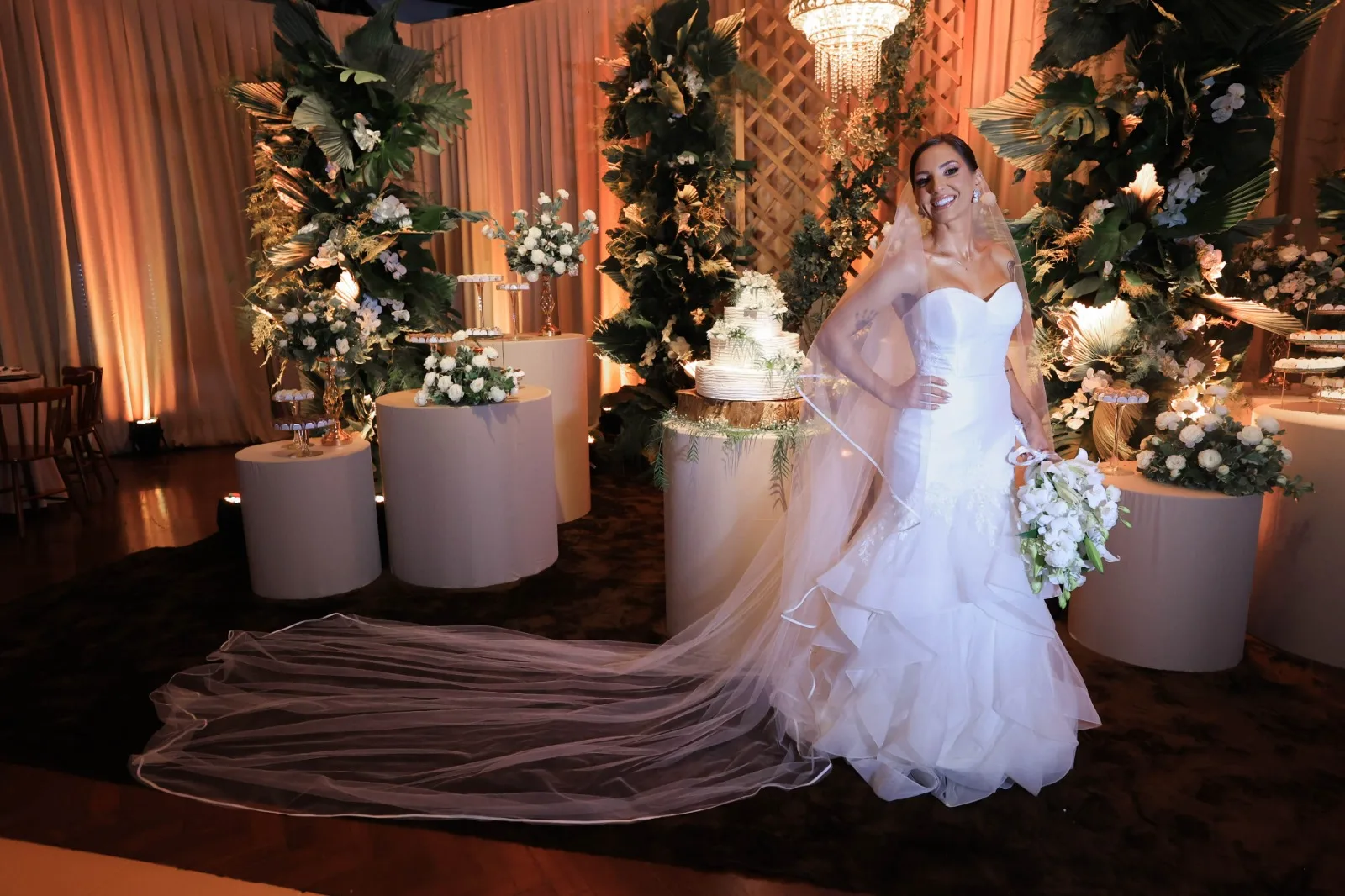 Já em dezembro, Débora entrou em contato com a cerimonialista Adriane Gomes, que seria fundamental em toda a organização. A primeira ideia era realizar a festa em março, mas o tempo seria curto, então foi agendada a data de 12 de abril de 2025. O local escolhido foi o Clube CTA. “Queríamos cerimônia e festa no mesmo lugar. Montamos uma tenda ao ar livre, a primeira já instalada lá”, lembra a noiva.