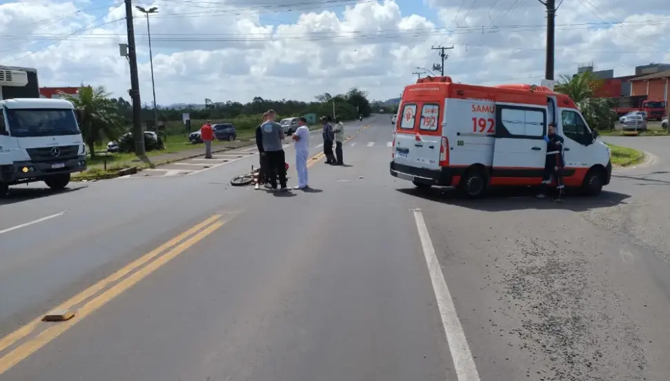 Um motociclista ficou ferido ao se envolver em um acidente de trânsito, no começo da tarde desta quarta-feira, 24, na RSC-453, na rótula de acesso ao bairro Battisti, em Venâncio Aires. A vítima caiu no meio da rodovia, foi socorrida pelo Samu e encaminhada para atendimento médico na UPA.