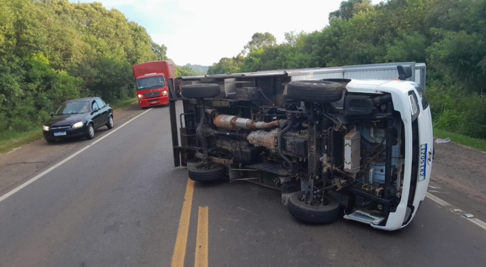 O utilitário saiu de Lajeado e seguia em direção a região de Bagé, onde faria entregas. Um homem que seguia na carona e auxiliava o motorista, relatou que o condutor perdeu o controle sobre o veículo e tombou. O motorista sofreu ferimentos leves. O caroneiro não se feriu.