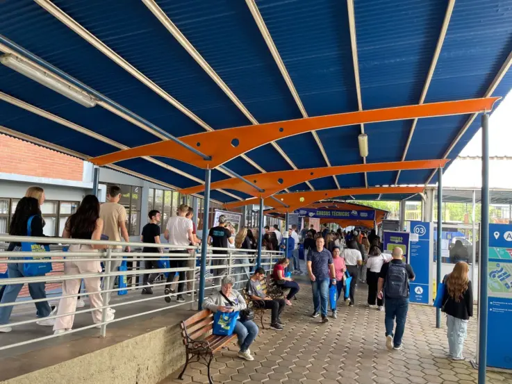A feira iniciou às 8h e tem como acesso principal o Prédio 1, onde os participantes recebem um kit de boas-vindas, com brindes incluindo um mapa do campus e as principais informações do evento. A partir dali, seguem para as atividades promovidas pelos cursos e para as diferentes ativações distribuídas nos espaços da universidade.