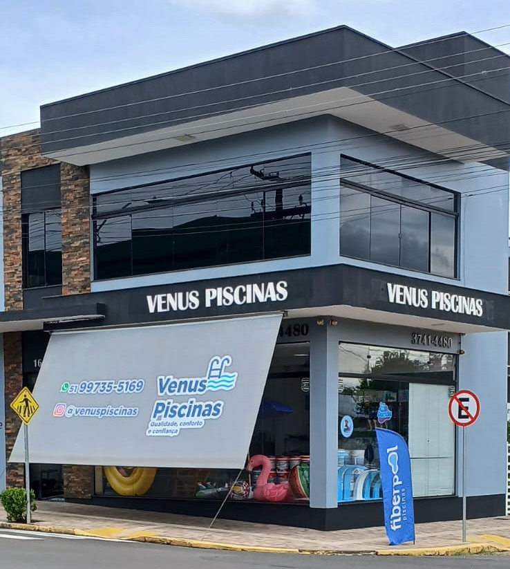 Em espaço amplo e conhecido, além da comercialização dos produtos e acessórios para piscinas na loja, a Venus trabalha com comercialização, instalação e manutenção de piscinas e serviços de limpeza.