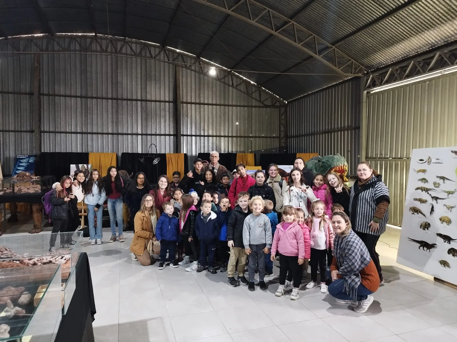 Olhinhos curiosos e muitas perguntas marcaram uma experiência especial para estudantes do Pré A da Escola Municipal de Educação Infantil (Emei) Yolita da Cruz Portela e do 5º ano 1 da Escola Municipal de Ensino Fundamental (Emef) José Duarte de Macedo, de Venâncio Aires, na última segunda-feira, 16. Os alunos foram até o município de Candelária para conhecer o Museu Aristides Carlos Rodrigues, referência de acervo paleontológico na região. A viagem de estudos foi realizada porque ambas as turmas desenvolvem projetos voltados aos dinossauros.