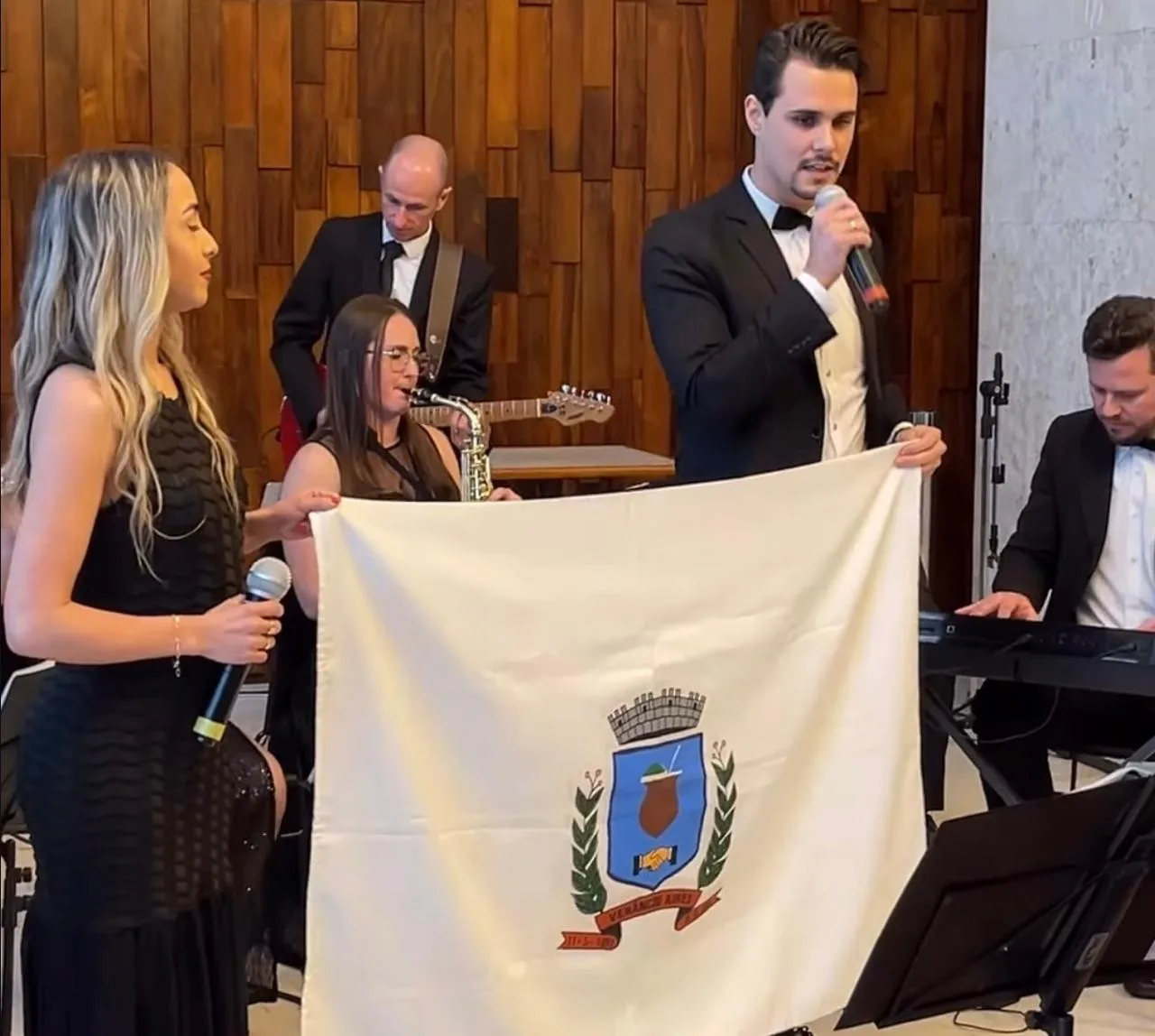 Em cerimônia realizada no Salão Júlio de Castilhos, na sede do parlamento gaúcho, um dos momentos emocionantes foi marcado pela execução do jingle da Fenachim. O objetivo foi divulgar e convidar o público para a edição comemorativa dos 40 anos da festa, que ocorrerá em maio de 2026. Com a bandeira de Venâncio Aires em mãos, os vocalistas Maiara Nunes Muller e Luís Antônio Klock cantaram versos que evidenciaram a cultura e a hospitalidade venâncio-airense.