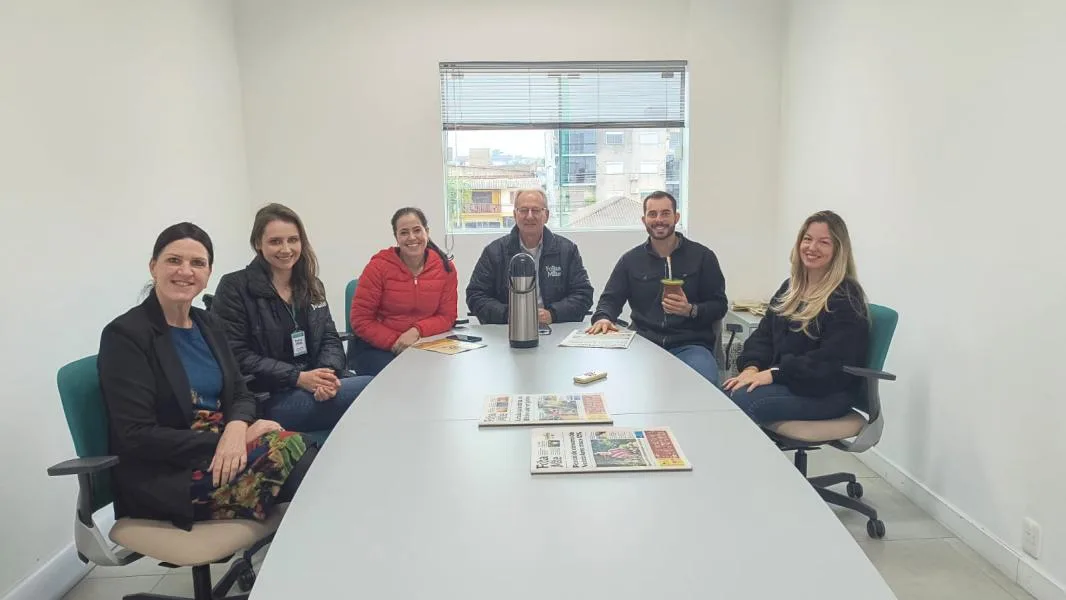 Ontem pela manhã, o jovem presidente da Câmara de Vereadores, Eduardo Luft, o Dudu (PDT), visitou a Folha e Terra FM, acompanhado da assessora legislativa Tábita Nagel e da assessora de imprensa Fernanda Bergmann. Aqui, com a diretora de Marketing e Projetos, Paula Carvalho, e a gerente Comercial, Jéssica Vogel, conversamos sobre a divulgação de atividades do poder Legislativo.