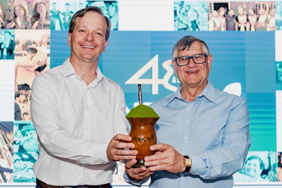 O domingo foi de momento importante para a 18ª Festa Nacional do Chimarrão, a Fenachim 40 anos, que acontece em maio de 2026. No Parque do Chimarrão, foi anunciado o presidente Executivo da festa, cargo ocupado nas duas últimas edições pelo empresário Vilmar de Oliveira. Milton Lauer, diretor de vendas da CTA Continental, foi o convidado pelo prefeito Jarbas da Rosa e aceitou. Milton foi produtor de tabaco em Vila Arlindo e desde 1998 trabalha na CTA, onde iniciou como safrista. Ele já tem uma participação comunitária. É presidente voluntário do Mocva Bicicross desde 2018 e atua na Associação Vôlei Venâncio, que no sábado sagrou-se vice-campeã gaúcha no feminino. Ele também conhece a Fenachim. Nas duas últimas edições trabalhou com o presidente da Associação Fenachim, Elmar Becker, o Tomate, e atuou na parte logística e de suporte operacional, contribuindo na organização. E Milton vai ter um time afinado. As coordenações seguem as mesmas das duas festas anteriores. Um time de qualidade e experiência.