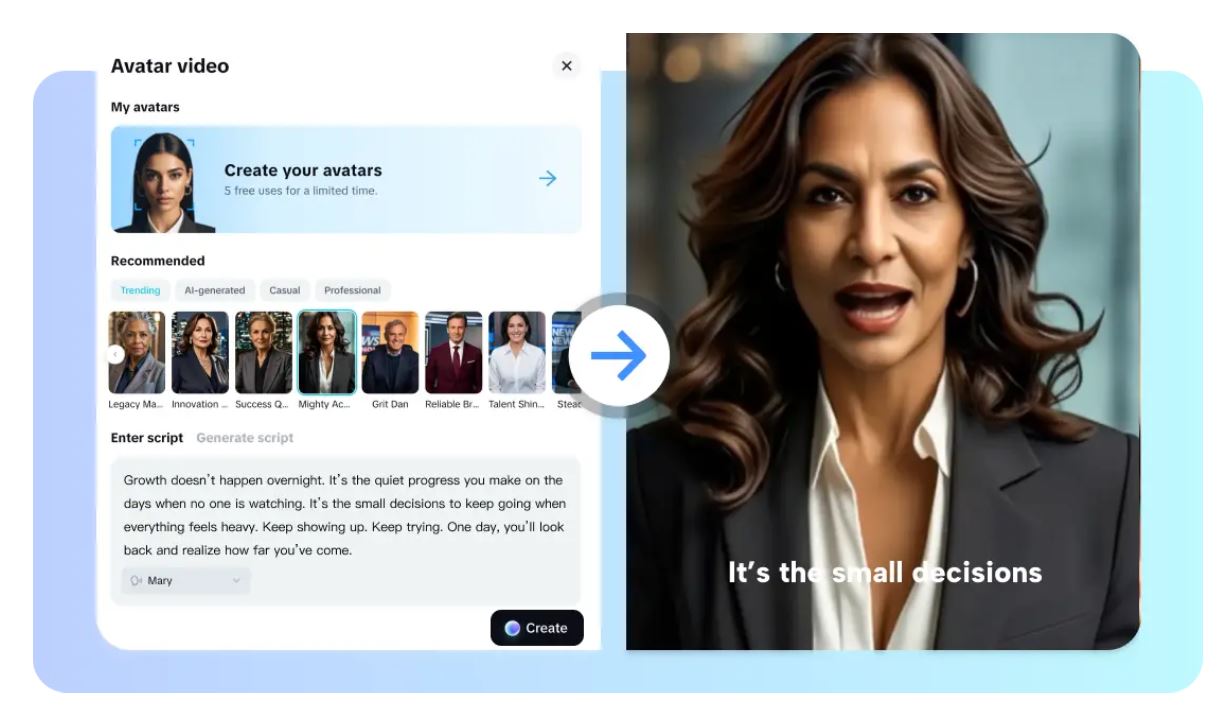- Avatares virtuais com voz sincronizada