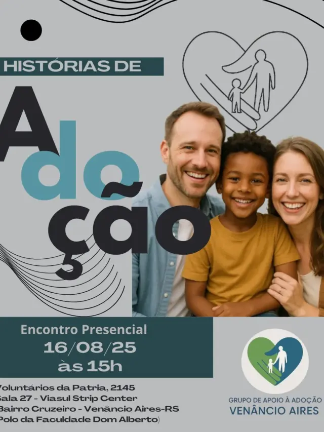 Após o primeiro encontro, realizado em junho, o Grupo de Apoio à Adoção de Venâncio Aires promove uma nova reunião no próximo sábado, 16, às 15h, na sala 27 do Viasul Strip Center, no bairro Cruzeiro. Será realizada uma roda de conversa sobre histórias de adoção, aproximando famílias à espera de um filho adotivo daquelas que já viveram a alegria da paternidade e maternidade por meio do processo.