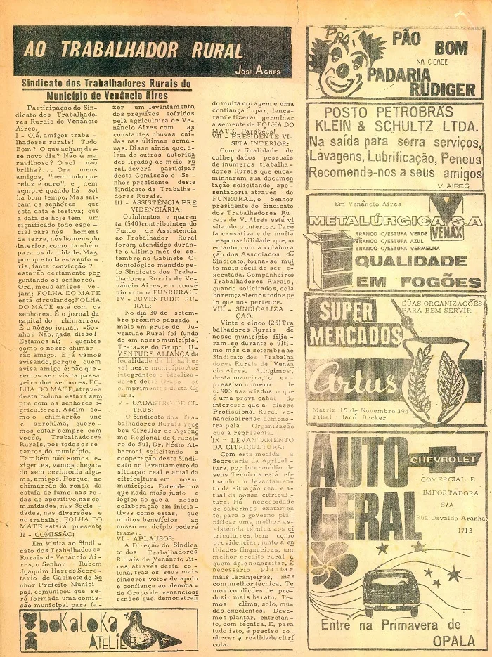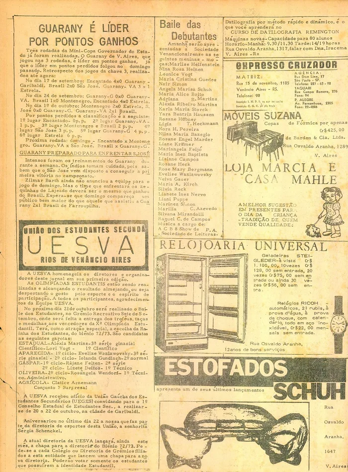 - Em 1973, entre os anunciantes da seção Indicador Profissional estavam os advogados Renê Schwengber e Jader Ribeiro Rosa e os médicos Flávio e Francismar Seibt (primeiros especialistas de Venâncio Aires).